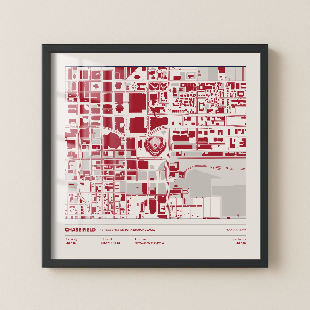 Our unframed Stadium Map prints are produced on thick, archival matte paper using premium pigment inks for sharp detail and long-lasting color. Each print arrives ready to be framed in any standard-size frame of your choice. The paper stock is the same museum-grade quality used in our flagship collections, ensuring a smooth finish and crisp stadium detailing.