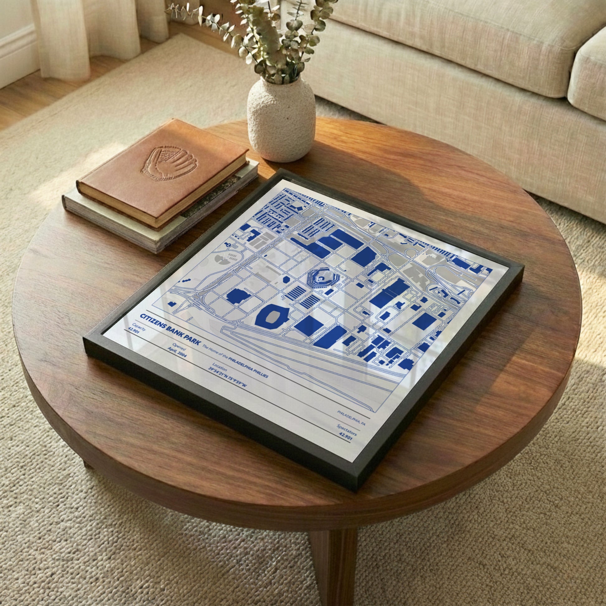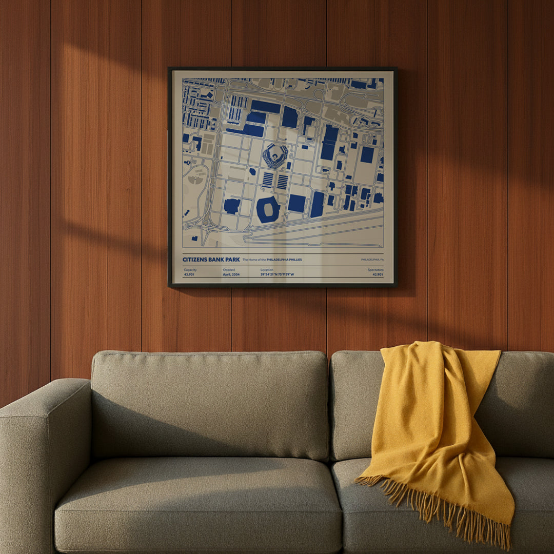 Every framed Stadium Map is handcrafted using solid wood frames and gallery-quality acrylic for clarity and durability. Your print is mounted with precision, protected against fading, and arrives ready to hang with a pre-installed sawtooth hanger on the back. These pieces are built to last and designed to look great in home offices, game rooms, fan caves, and shared spaces.