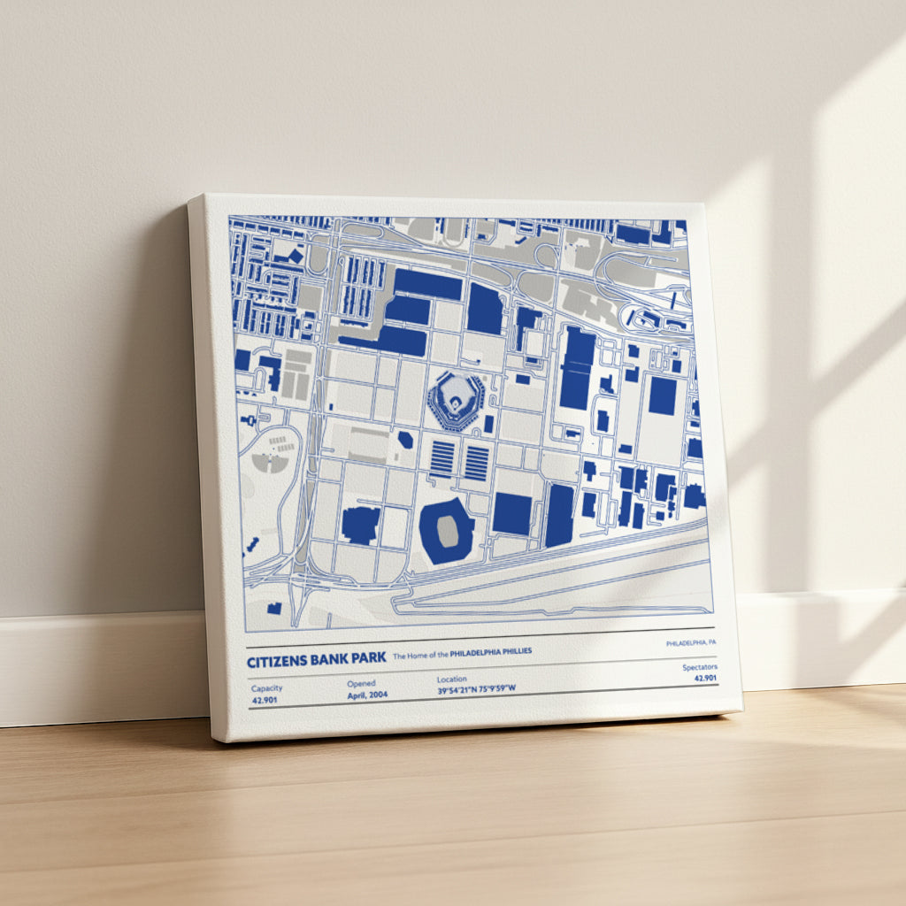 Our canvas Stadium Maps are printed on durable, textured cotton canvas for a clean, modern look. Each piece is stretched over sturdy wooden bars and comes fully ready to hang right out of the box. The canvas texture gives each stadium illustration a bold, elevated finish, perfect for anyone who wants statement-level wall art.