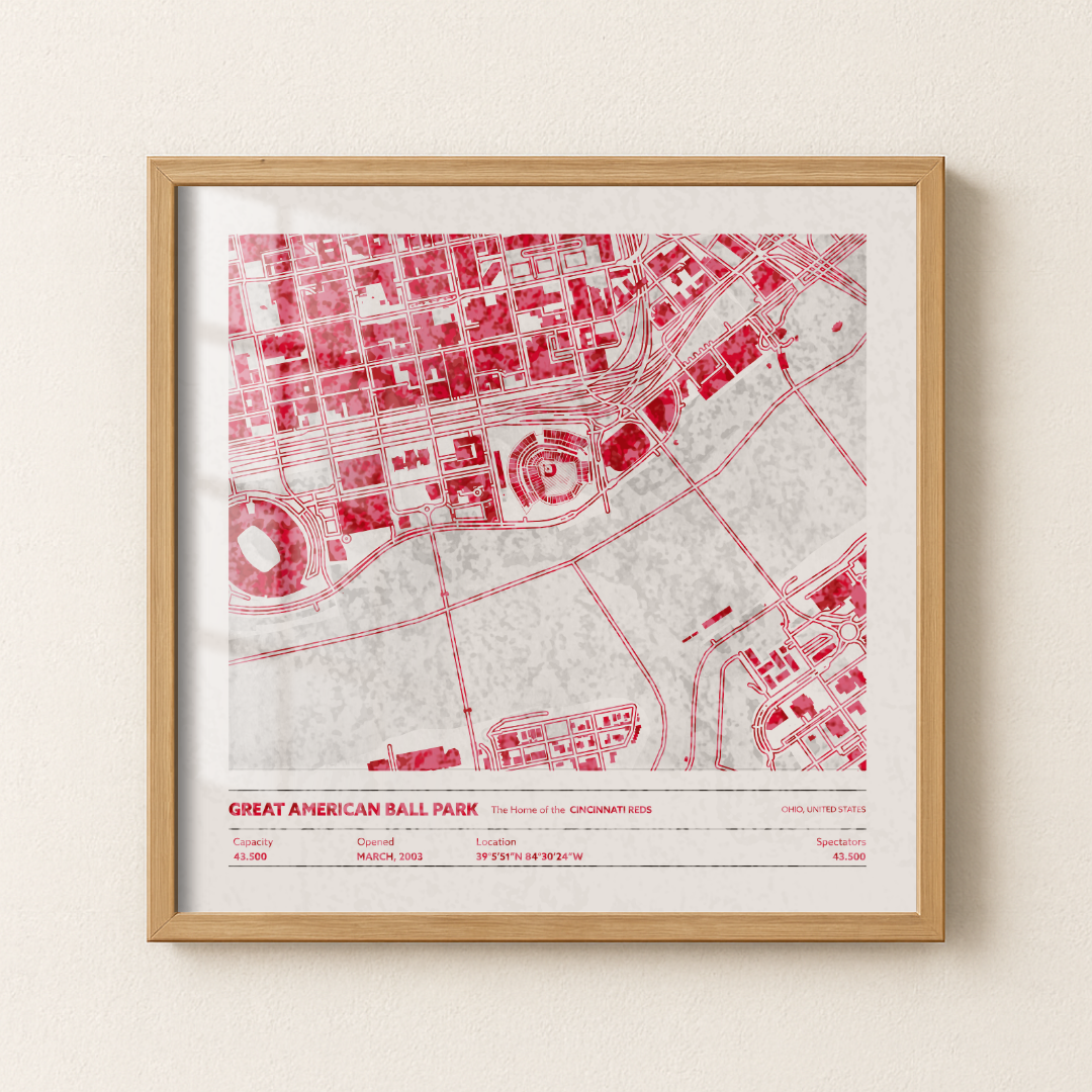 Every framed Stadium Map is handcrafted using solid wood frames and gallery-quality acrylic for clarity and durability. Your print is mounted with precision, protected against fading, and arrives ready to hang with a pre-installed sawtooth hanger on the back. These pieces are built to last and designed to look great in home offices, game rooms, fan caves, and shared spaces.