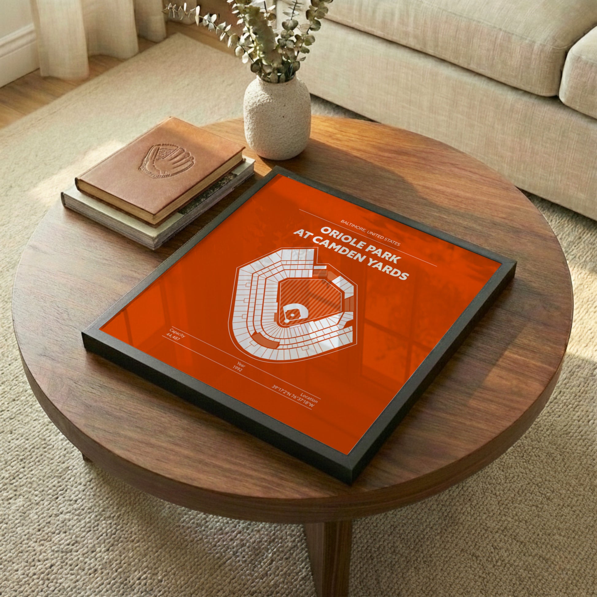 Every framed Stadium Map is handcrafted using solid wood frames and gallery-quality acrylic for clarity and durability. Your print is mounted with precision, protected against fading, and arrives ready to hang with a pre-installed sawtooth hanger on the back. These pieces are built to last and designed to look great in home offices, game rooms, fan caves, and shared spaces.
